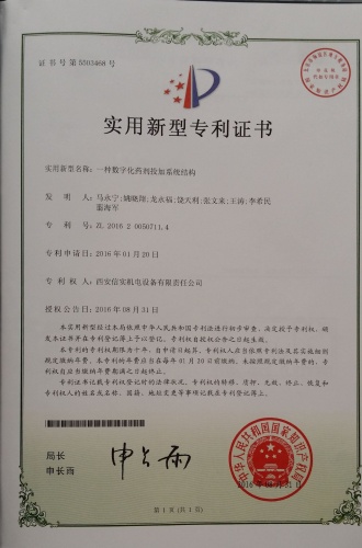 2016年8月31日,由公司申報的《一種數(shù)字化藥劑投加系統(tǒng)結(jié)構(gòu)》獲得國家實(shí)用新型專利授權(quán),取得了實(shí)用新型專利證書,專利號為:ZL 2016 2 0050711.4。證書的取得為公司技術(shù)創(chuàng)新工作再添新業(yè)績。
